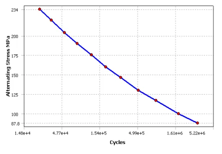 - 代替応力が234.12 MPaの場合、疲労寿命は24,076サイクルと予測されました。